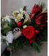 Ladita contine : trandafiri,amaryllis,brassica,pene decorative ,orhidee,crengute de brad si globulete.